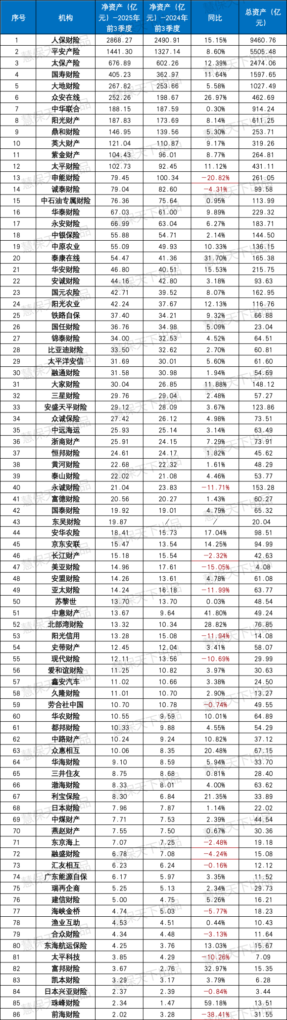 整体来看,前三季度财险业实现净利润同比52%的大幅增长,头部企业盈利贡献度持续攀升,行业扭亏为盈的基础不断夯实,但中小险企承保亏损普遍、部分机构偿付能力承压、净资产缩水等深层难题仍未根本解决,行业分化格局依旧显著。