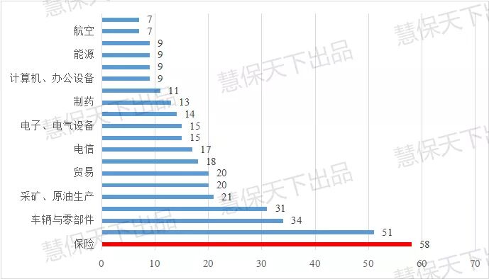 2018年度《财富》世界500强中,保险企业占58家(详情请参照文末表格),高于其他行业;银行占51家,仅次于保险业;车辆与零部件类企业占34家,位居第三位。