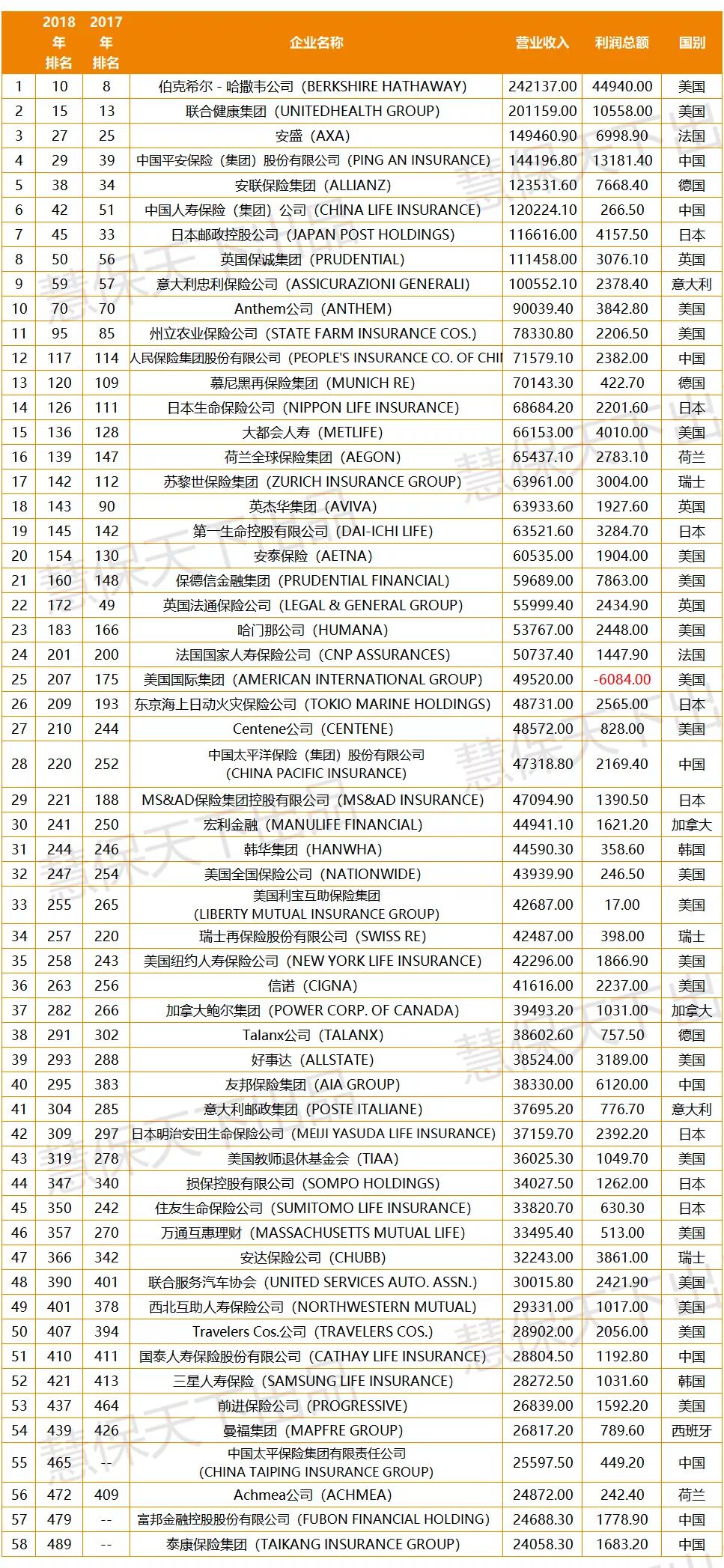 2018年7月19日,美国《财富》杂志发布2018年度世界500强排行榜,全球58家保险公司上榜,其中9家总部位于中国,引发业内一片欢腾,但这就足够了吗?其实透过《财富》世界500强排行榜,我们还应该看到更多,有进步,但更多的是差距。