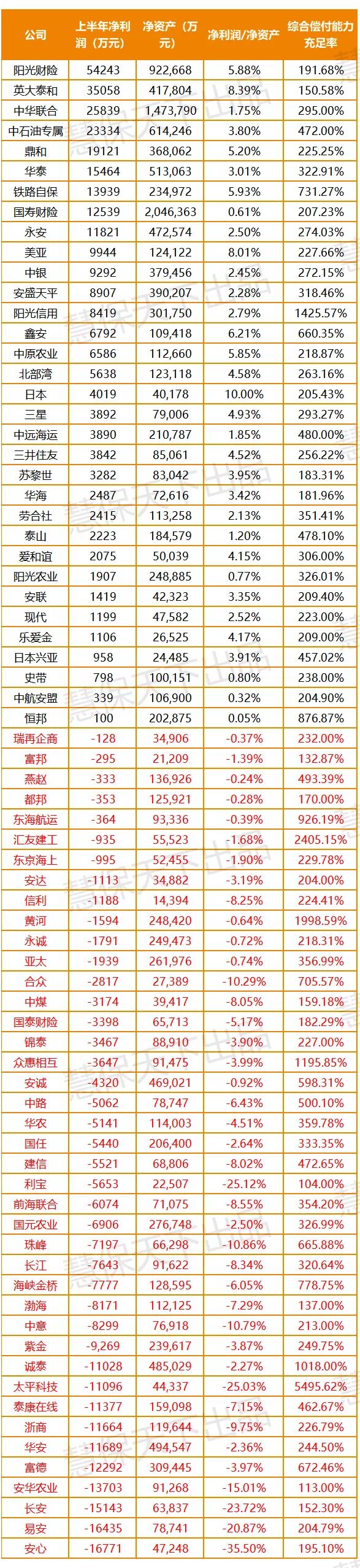 非上市财险公司上半年盈利大排名,41家亏损超25亿元行业动态