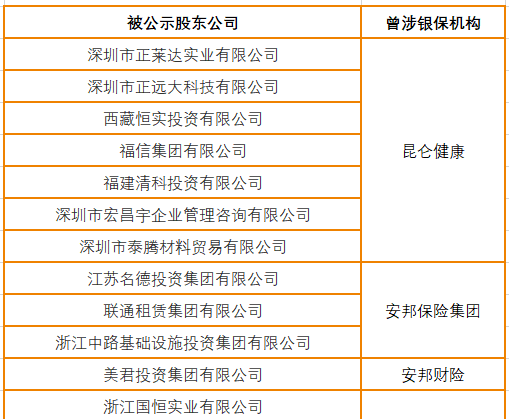 银保监会首次公布38家银保机构重大违法违规股东名单,将建立常态化公开机制