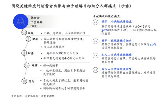 首先,对客户需求深度挖掘洞见是关键的第一步。险企可以借助系统化调研工具,对人群、场景和生命阶段的细分客户群体进行划分,深入了解用户对医疗、健康和服务的需求;