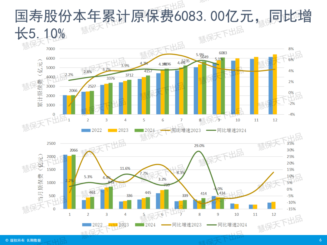 前9月,国寿寿险、平安人寿、太保寿险、新华保险、人保寿险、阳光人寿、国华人寿7家上市寿险公司的累计原保费收入为1.58万亿元,同比增长5.9%。具体来看,7家上市寿险公司前9月的原保费收入及同比增速分别为: