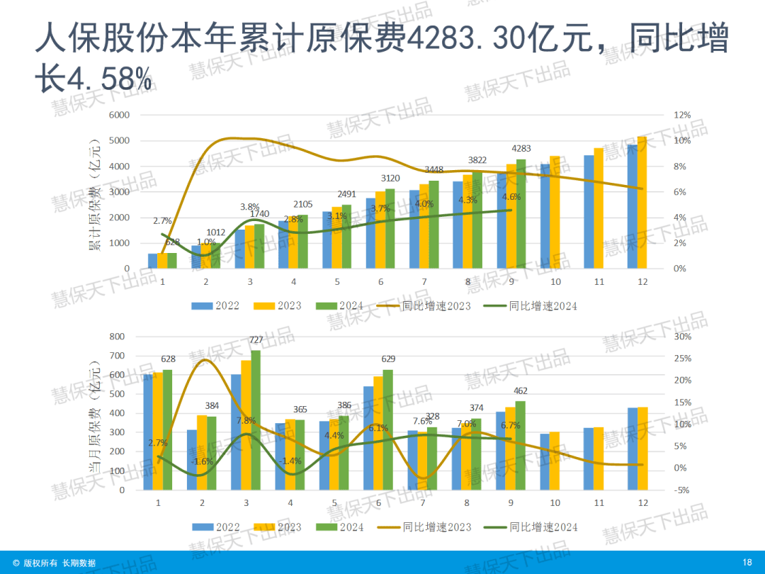 据公告披露,人保财险前9月车险累计原保费收入2134.24亿元,同比增长3.2%。非车险业务保持增长势头,主要得益于意健险和责任险增速提升,农险、意健险、责任险、车险的当月保费增速为-7.2%、18.3%、7.7%、5.3%。