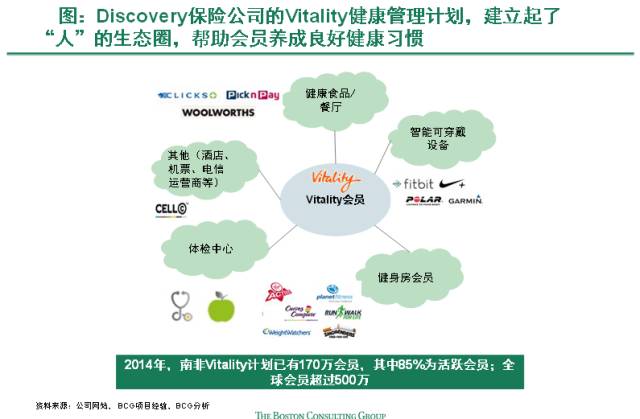 Vitality项目取得了较为显著的成功,2015年Discovery对2011至2014年参与Vitality计划的80万位会员进行调研分析,结果显示高度活跃的会员在健康相关的支出减少了37%。现在,Vitality计划已经拓展到全球美国、英国、德国、法国、中国大陆、新加坡、澳大利亚、香港等各个国家与地区,用户数量超过500万。