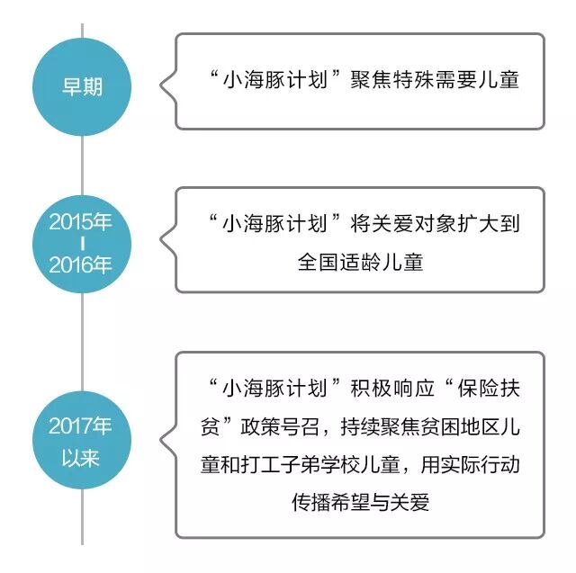 截至2019年9月30日,“小海豚计划”累计举办近600场活动,受益儿童超过74800人,为超2.7万名儿童捐赠专属保险产品,总保额超过9.68亿元,累计捐赠千万元爱心物资,逾14000名志愿者参与活动。