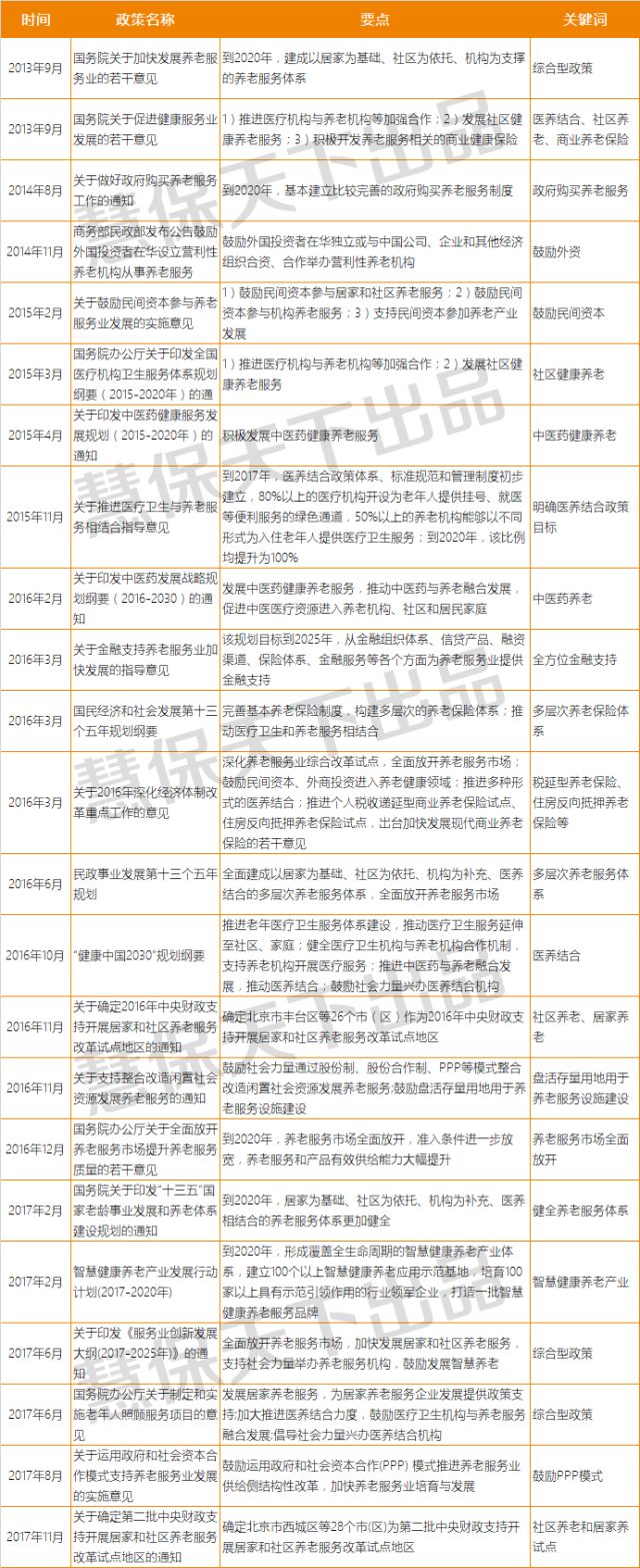 要想跟上养老产业发展的大趋势,首先就要对国家政策了如指掌,『慧保天下』精心梳理了从2013年开始的各种养老产业政策,可以看到,国家对于养老产业的扶持力度正在逐步加大,商业保险公司在其中大有可为。