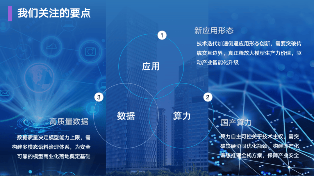 未来,在现有基础上,结合大模型技术进展,我们将重点关注关注以下五个方面:安全、能力提升、算力、能力共享和AI治理。