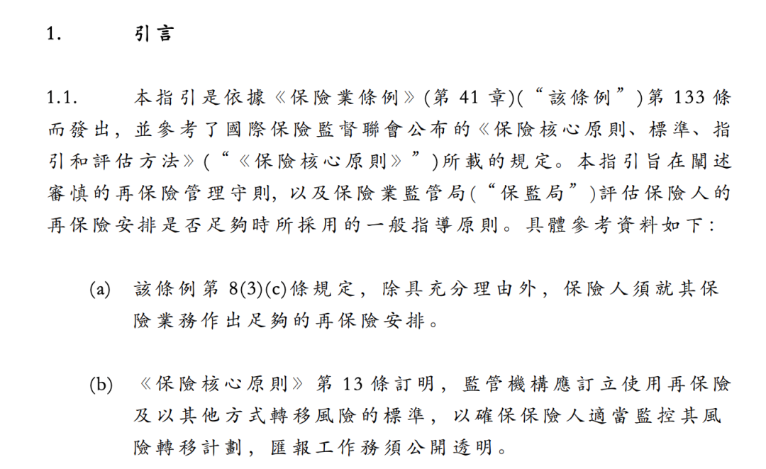 图片来源:香港保监局《再保险指引》