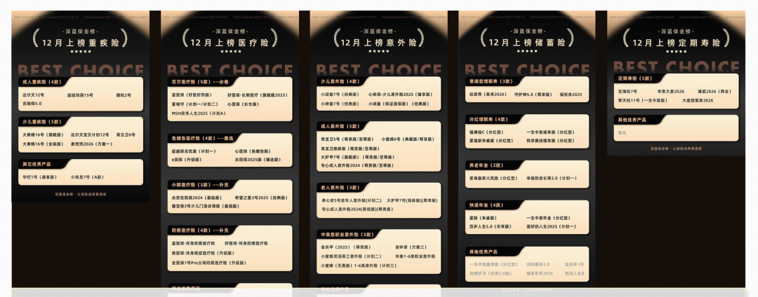 在海量产品之下,用户还期待真正找到匹配自己的产品,而深蓝保就通过依据不同人生阶段、健康状况、家庭角色,建立差异化测评模型,实现了从“千人一面”到“千人千面”的转变,以精准匹配解决“产品错配”的痛点。可以看到,即使是同一款产品,但在不同人群榜单中的表现可能截然不同,比如,一款适合年轻人的高性价比医疗险,但可能会因为健康告知严格而不适合为父母配置。