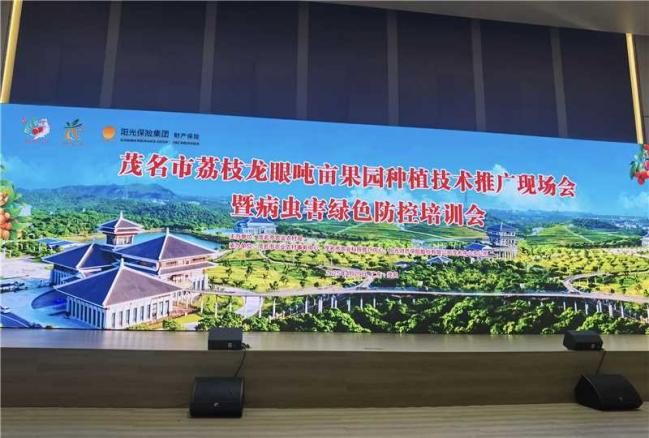 今年4月,在茂名市农业农村局指导下,阳光财险茂名中支成功举办“荔枝龙眼吨亩果园技术推广暨病虫害绿色防控培训会”,通过联合华南农业大学、广东省农科院果树研究所专家,为果农讲解新品种选育、绿色防控等先进技术。