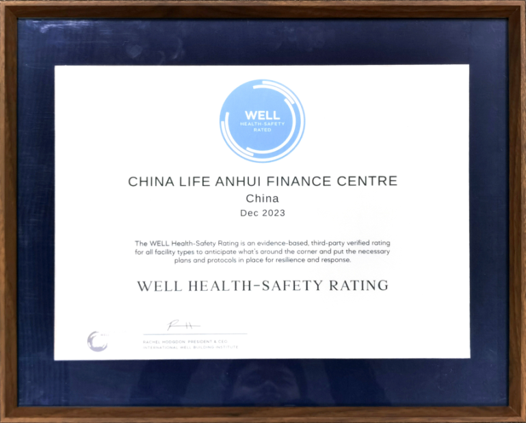 图:中国人寿安徽金融中心获得WELL HSR认证
