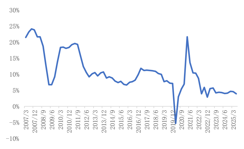 当前,世界经济形势复杂多变,海外贸易保护主义抬头,使得中国传统的出口导向型增长模式面临较大挑战。与此同时,国内人口红利逐渐消退,房地产市场仍对经济造成较大的拖累效应,中国经济已进入增速换挡、结构优化、动力转换的新阶段。数据显示,中国GDP增速已从10年前的8%降至5%附近。