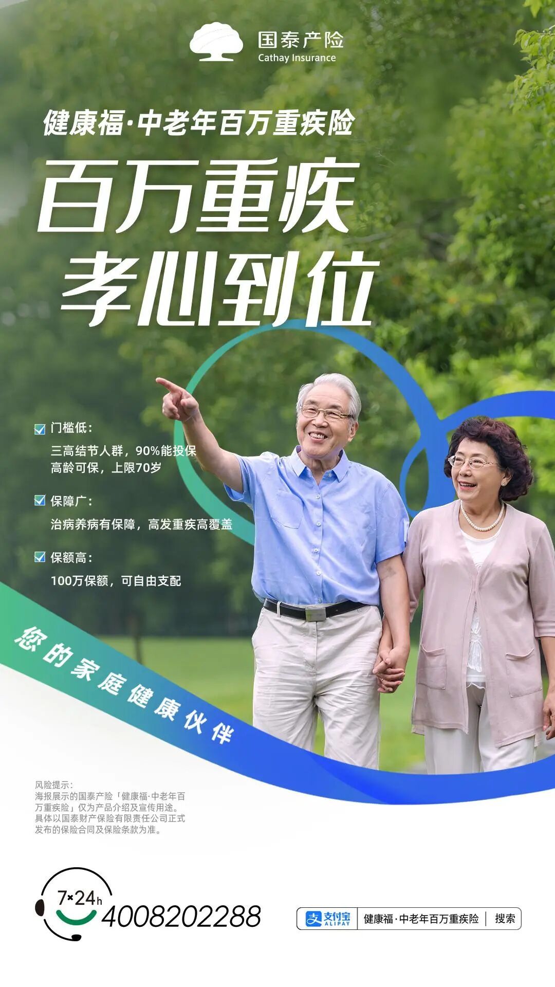 风险提示:本文所述国泰产险「健康福·中老年百万重疾险」仅为产品介绍及宣传用途。具体以国泰财产保险有限责任公司正式发布的保险合同及保险条款为准。